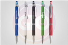 Caneta Personalizada, Caneta Plástica, design moderno, inovador, resistente, detalhes cromado, corpo nas cores: preta, prata, verde, azul e vermelha. Gravação em 1 cor já incluso.