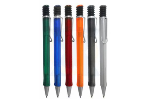Caneta de plástico com clip prata. Tamanho total (CxD): 13,6 cm x 3,5 cm Gravação em 1 cor já incluso.