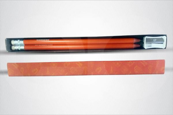 Kit personalizado com dois lápis personalizados e apontador (apontador sem impressão). Caixa em papel cartão 250gr. Uma gravação já inclusa.